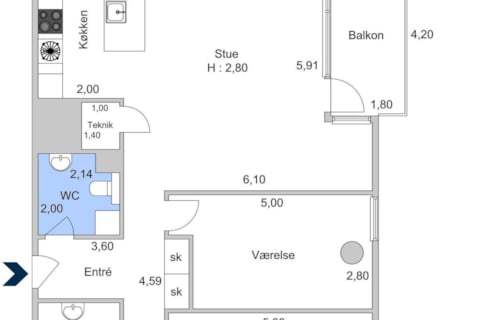 Lejlighed på 85 m2 - Posten, 1577 København V